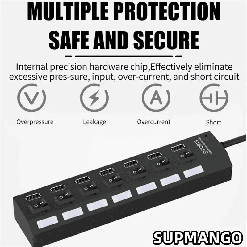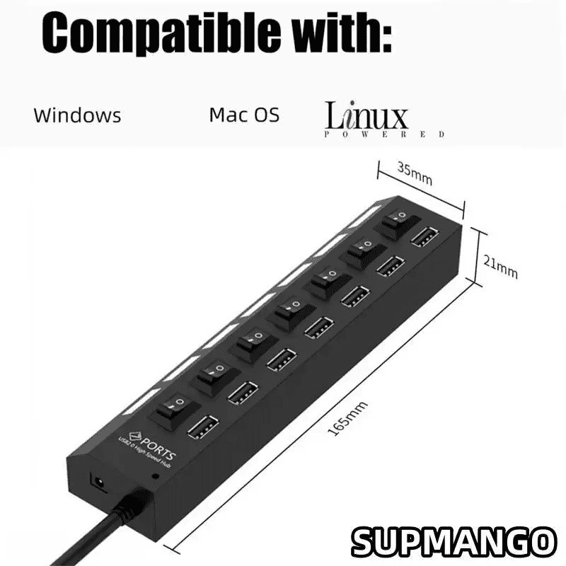 • Multiple Ports :With 7 ports, this USB hub allows you to connect multiple devices to your laptop or PC.